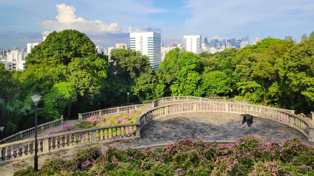 Dari atas jembatan kayunya, kamu bisa lihat siluet kota yang samar tertutup pepohonan. Suasananya tenang, adem, dan jauh dari keramaian turis. Cocok banget buat kamu yang suka healing tapi ogah tempat mainstream.